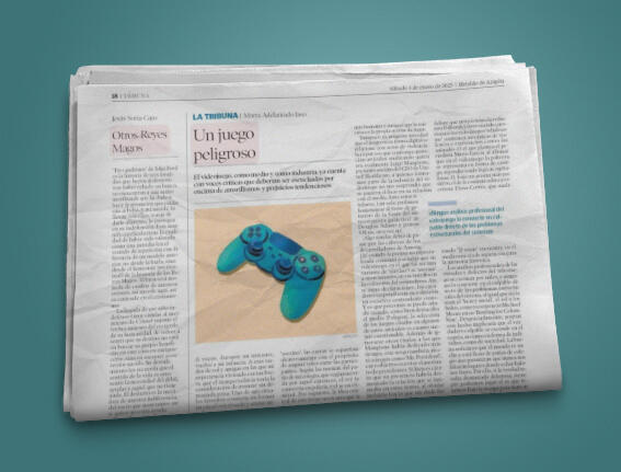 ■ Artículo periodístico "La agencI.A. del mundo real" publicado en el Heraldo de Aragón en julio de 2025. En él se analiza la pérdida de libertad que supone la IA generativa partiendo del análisis de la agencia del jugador en Bioshock.■ Artículo periodístico "Un juego peligroso" publicado en el Heraldo de Aragón en enero de 2025. En él se cuestiona la vinculación mediática de los videojuegos y la violencia.